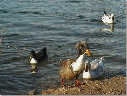 Whenever I find a motley group of ducks or geese, I feel right at home, like this is where I belong... and there they were... some looked like regular Mallards, some like mixed up crosses between a domestic duck and a Mallard and one had a strange topknot.